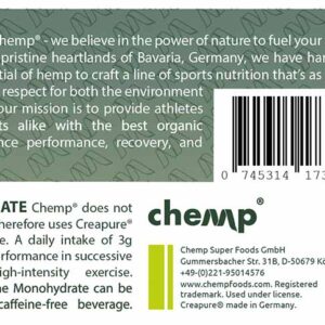 Introducing Chemp Creatine 300g with Creapure® – the premium choice for fitness enthusiasts seeking the highest quality creatine supplement. Sourced and manufactured in Germany, Creapure® is known worldwide for its unrivaled purity, consistency, and effectiveness. Each serving delivers 100% pure creatine monohydrate, helping to enhance muscle strength, boost performance, and speed up recovery.