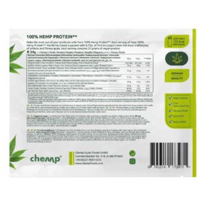 Make the most out of your workouts with Chemp Pure 100% Hemp Protein, a product that mixes easy and taste great. Intended for those who need an additional source of protein in their daily diet. Each serving of Chemp Pure 100% Hemp Protein provides 21 grams of vegan protein.